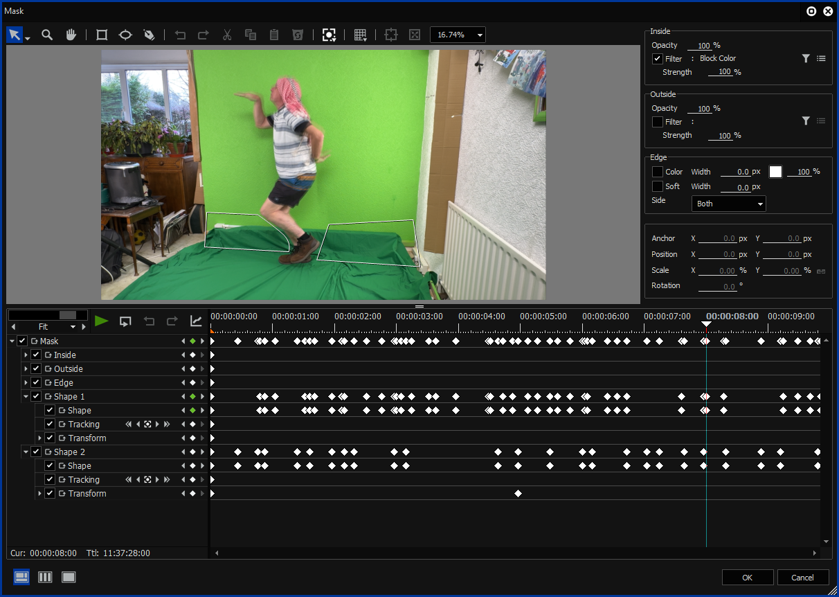 Or a horror movie involving creepy cemeteries without actually being in the cemetery. Holes in your ceiling or floor can magically appear – odd mirrors with green reflections could have aliens within them. If you are in a team you can have half the team inside the footage of the green screen and the other half on the outside of the green screen looking in – like two movies at once.
